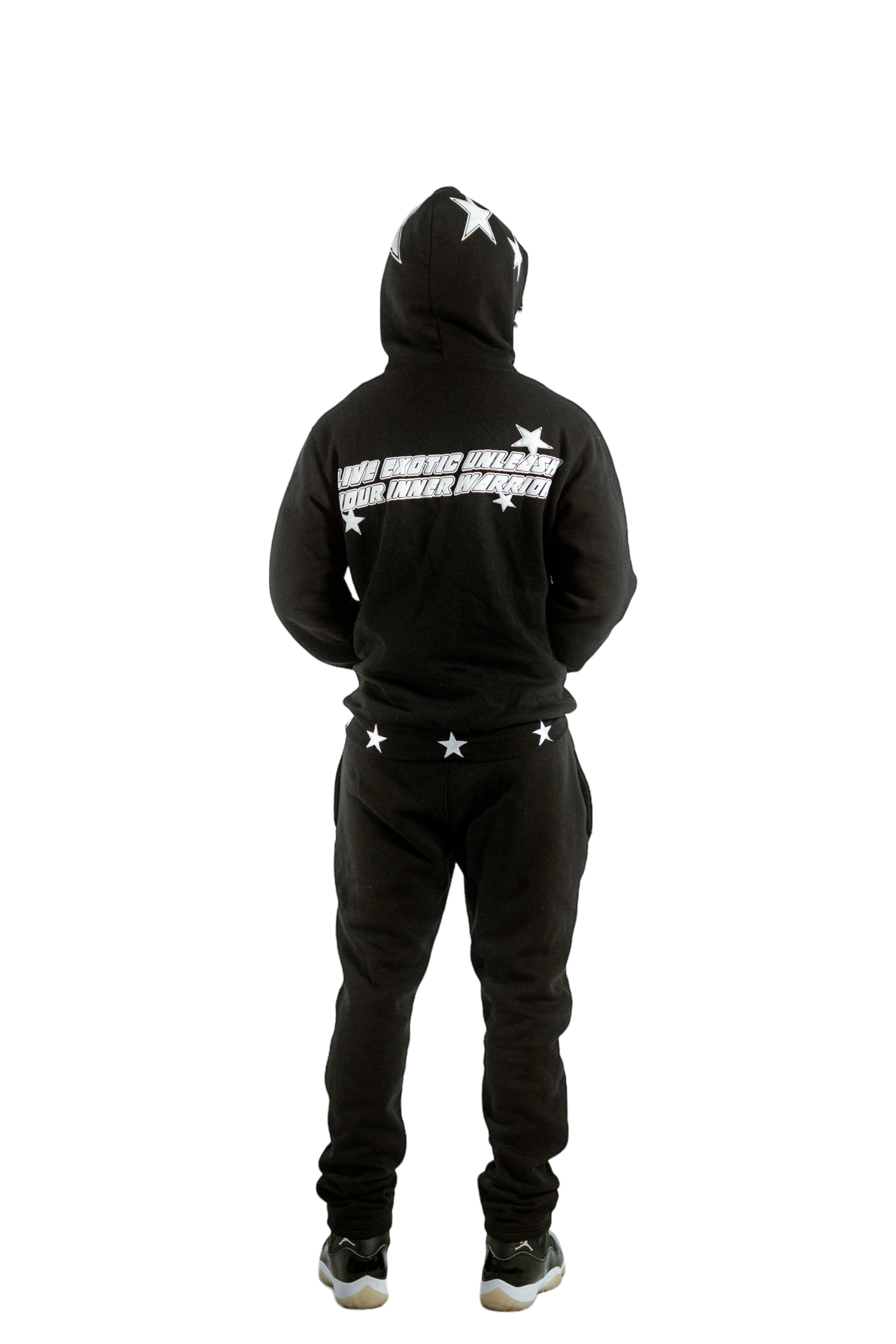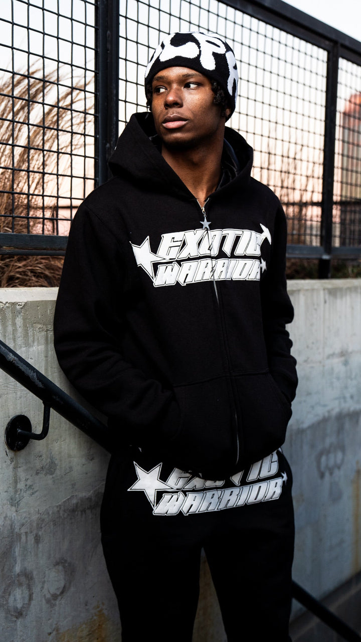 Introducing the new and improved Exotic Warrior hoodie and sweatpants, designed to elevate your style and comfort game to new heights. This set is crafted from a premium quality, smooth fabric that feels soft and plush against your skin, ensuring maximum comfort all day long.